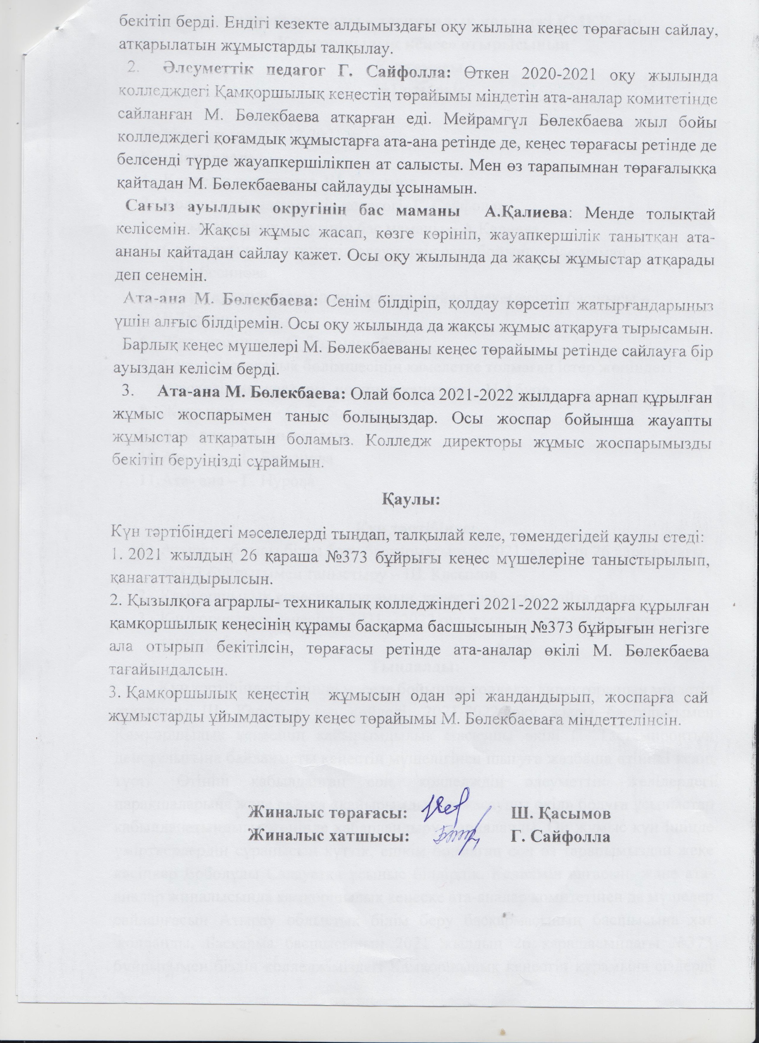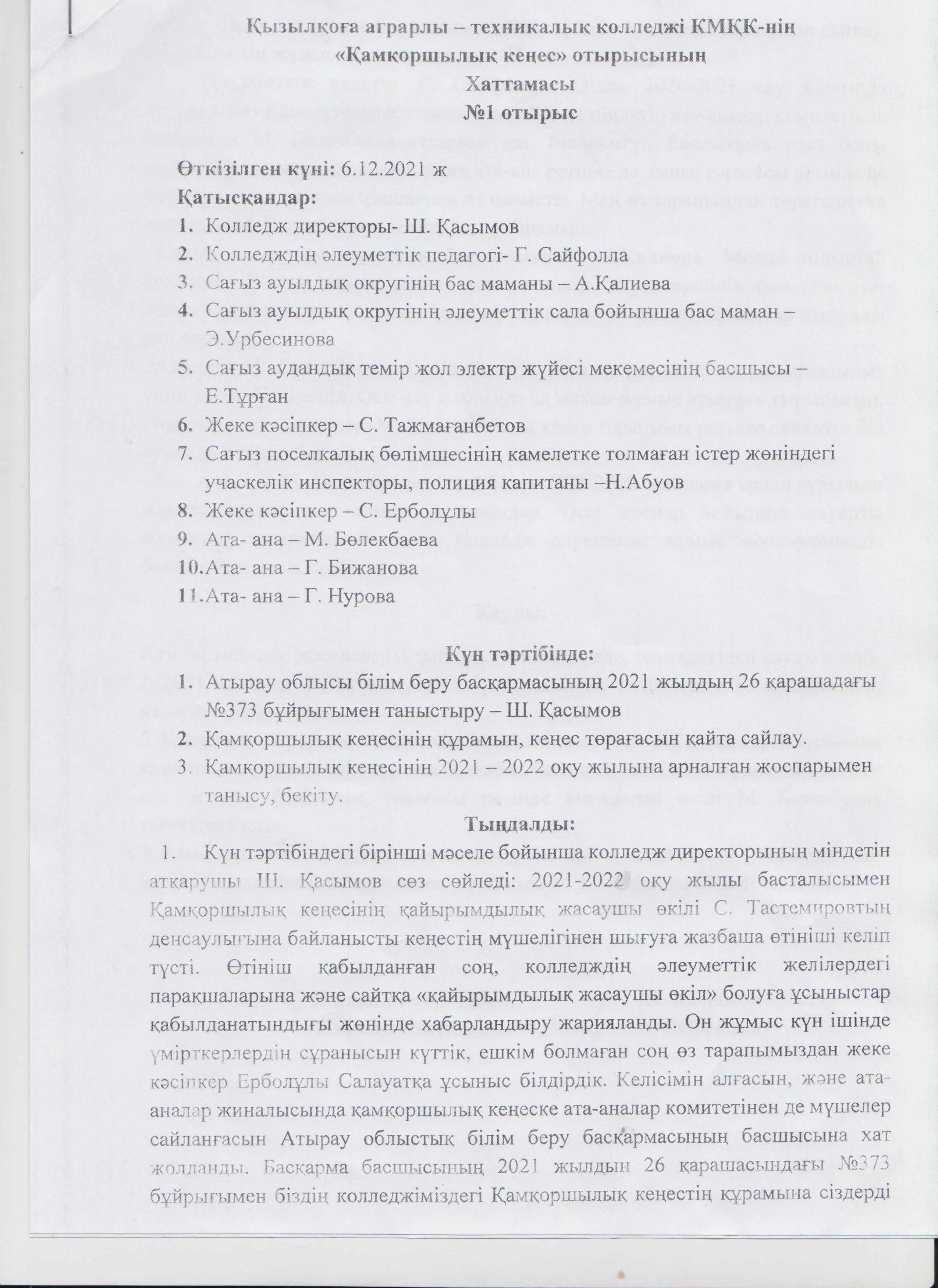 ҚЫЗЫЛҚОҒА АГРАРЛЫ-ТЕХНИКАЛЫҚ КОЛЛЕДЖІ - Хаттама №2