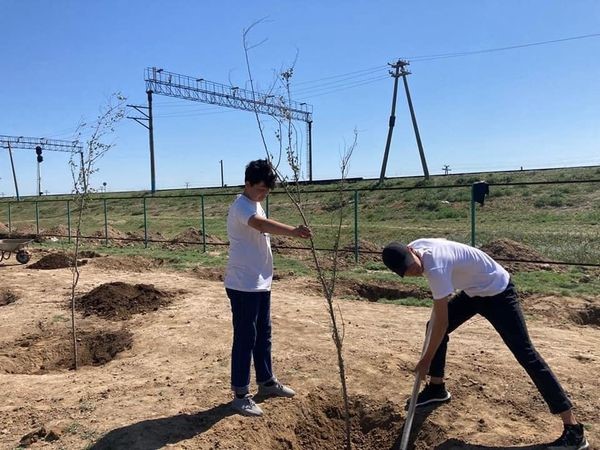 Осы ұранмен колледж жастары бүгін Сағыз ауылындағы игі бастамаға ат салысып, туған жердің экологиялық жағдайын жақсарту, көгалдандыру мақсатында ағаш көшеттерін отырғызды.
