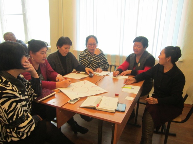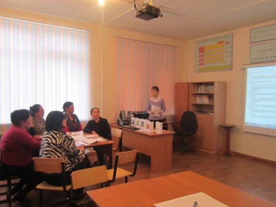 Семинардың барысы: “Жалғыз жүріп жол тапқанша, көппен жүріп адас” деген халық нақылын басшылыққа алып, сөзімді елбасымыз Н.Н.Назарбаев «Қазіргі заманда жастарға жаңа технологиялар негізінде әлемдік стандартқа сай мүдделі жаңа білім беру өте қажет» деп айтып өткеніндей жас ұрпаққа білім беру жолында, жаңашыл әдіс-тәсілдерді оқу мен тиімділігін арттырудың маңызынан бастадым. Семинарда: бүгінгі заман талабына сай, жаңа ағымға қабілетті, өзі шешім қабылдай алатын, өздігінен білім алуға ынталы тұлғаны қалыптастыру негізінде, оқытушылар семинардың соңына дейін, топтық жұмыс туралы білгендерін ортаға сала отырып, топтық жұмыстың тиімділігі туралы толық мағлұмат алып: ББҮ стратегиясымен, стоп-кадр, Ақылдың 6 ойшыл қалпағымен толық таныс болды. Семинардан соң, оқытушылар коучингті өткізуді үйренеді, сабақта топпен жұмысты ұйымдастыруды пайдаланады деген нәтиже күте отырып, коучингті “Мадақтау” тренингімен бастап, бір-біріне жақсы комплимент айтқызып, мұғалімдер арасында жағымды ахуал қалыптастырдым, өйткені, бұл тренинг қатысушылар арасында жылы қарым-қатынас орнату өте жақсы ықпалы бар екенін білемін. Осы тренинг әріптестердің арасындағы қатынасты жақсартып қана қоймай, семинардың сәтті өтуіне ықпал жасады. Оқытушыларды топқа бөлу үшін колледж психологы Э.Еділованы көмекке шақырдым. Геометриялық фигураларды пайдаланып, қатысушы қандай фигураны таңдаса, сол адамға төмендегідей психологиялық мінездеме берілді.